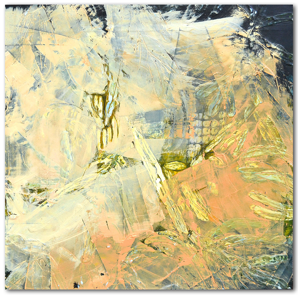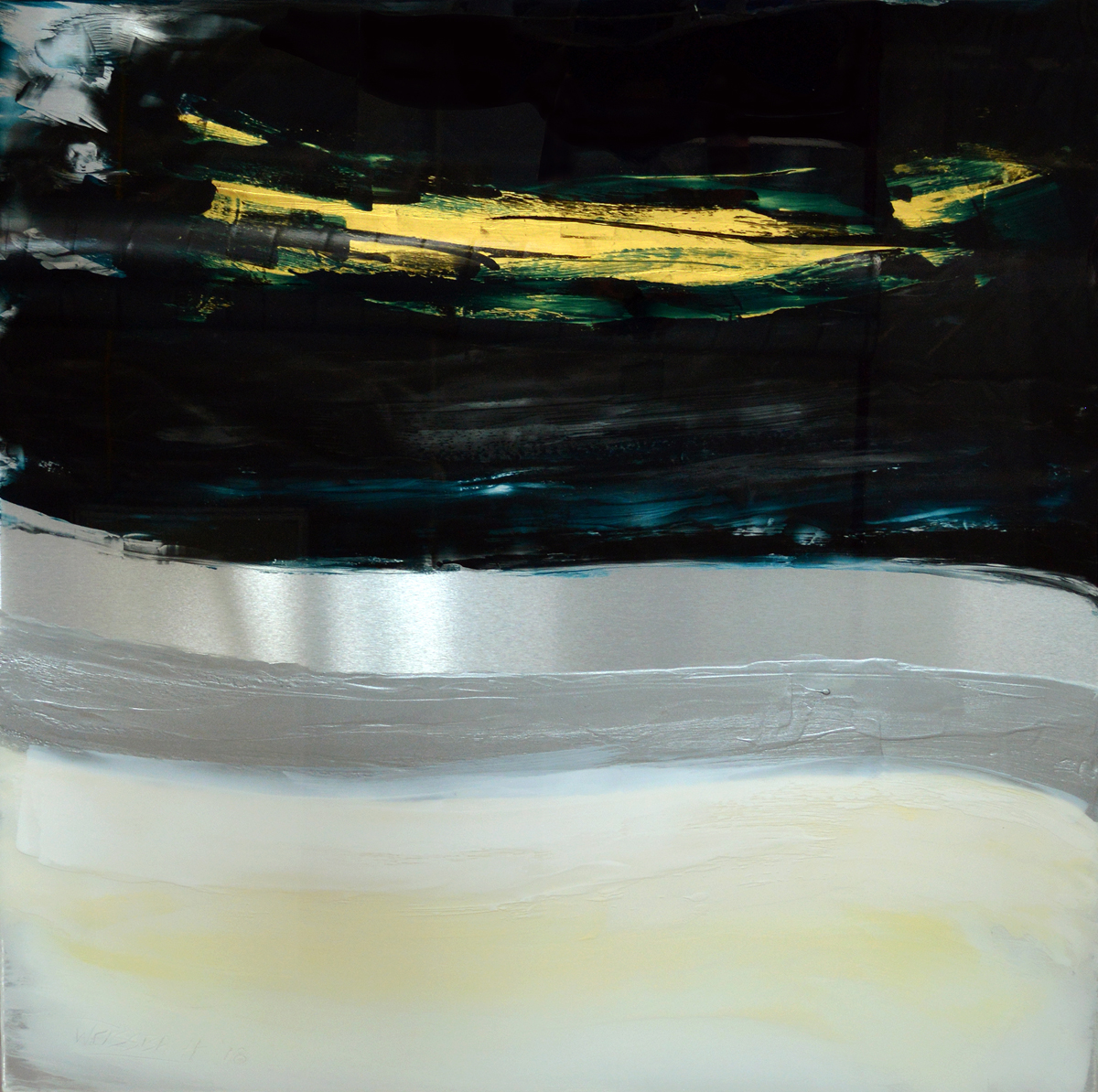 MetalScape, 108 45″ x 45″ encaustic, aluminum, 23K gold leaf, UV resin on panel 2018. I’m excited to announce that MetalScape, 108 will be on display at L’Attitude Gallery in an exhibition entitled “Looking Large.”