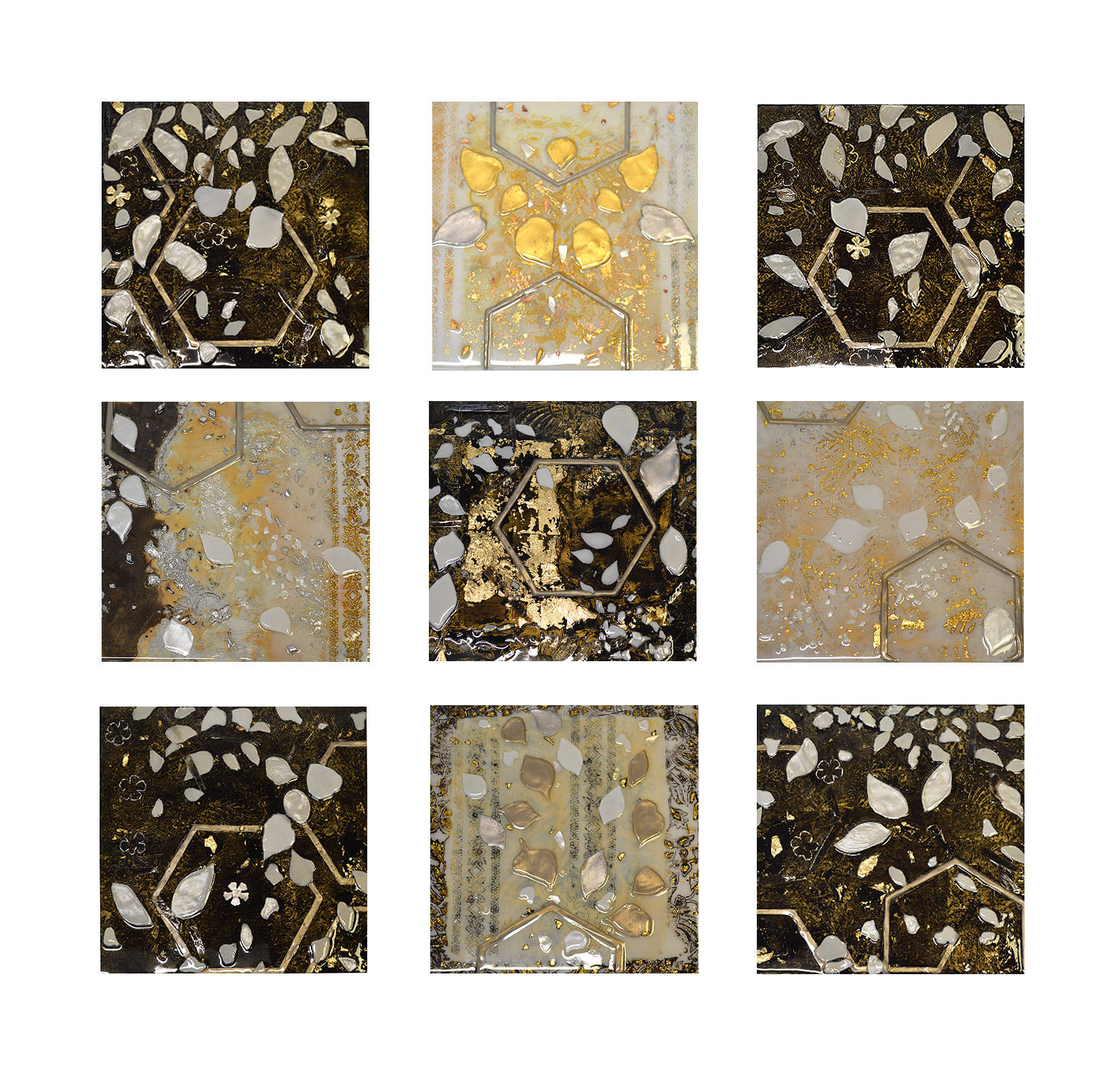 encaustic & metal leaf, 6″ x 6″encaustic & metal leaf, 6″ x 6″ Come see Meanderings this First Friday at L’attitude Gallery, featuring “pieces that highlight the beauty in subtle detail,” such as these